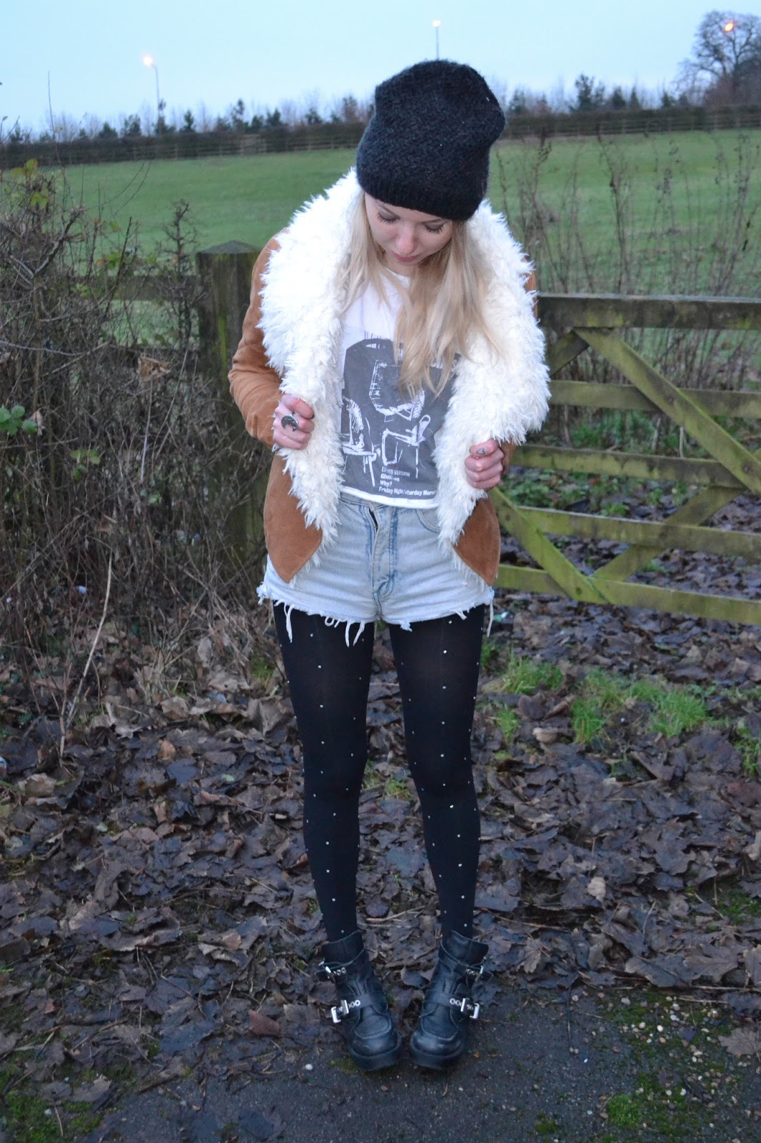 I'm back after the xmas break! Been a lazy blogger recently but had a nice time with my family in Wales and been crazy busy with the shop. Me and Lucie were at the wholesalers all day yesterday - it was tres stressful! But we stopped off on our way home to get a couple of blog pictures done. I am still in love with this jacket, it is soooooo cosy and warm i never want to take it off. To be honest i'm not loving this outfit, i just kind of threw it on in my rush to get ready early in the a.m's. It's like a mish mash of 70s hippy and wtf.....
